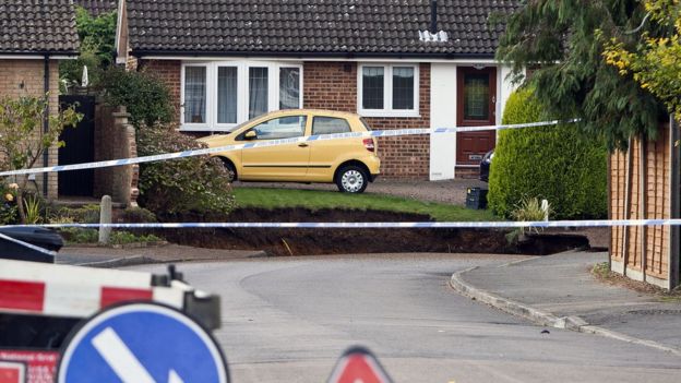 The 66ft (20m) diameter hole spread across a front garden and driveway on Fontmell Close and is 33ft (10m) deep.